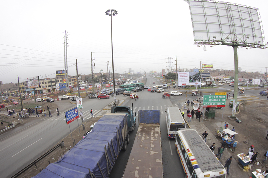 Se construyó un paso deprimido en la Panamericana Norte para eliminar los semáforos existentes en la zona. Con ello, se permitió el tránsito continuo en la autopista y la construcción de una rotonda provista de 2 puentes a nivel, que actualmente recibe el tránsito de las avenidas 25 de Enero y 2 de Octubre, y los desplazamientos de los vehículos que salen o entran a la autopista a través de los ramales del intercambio vial.